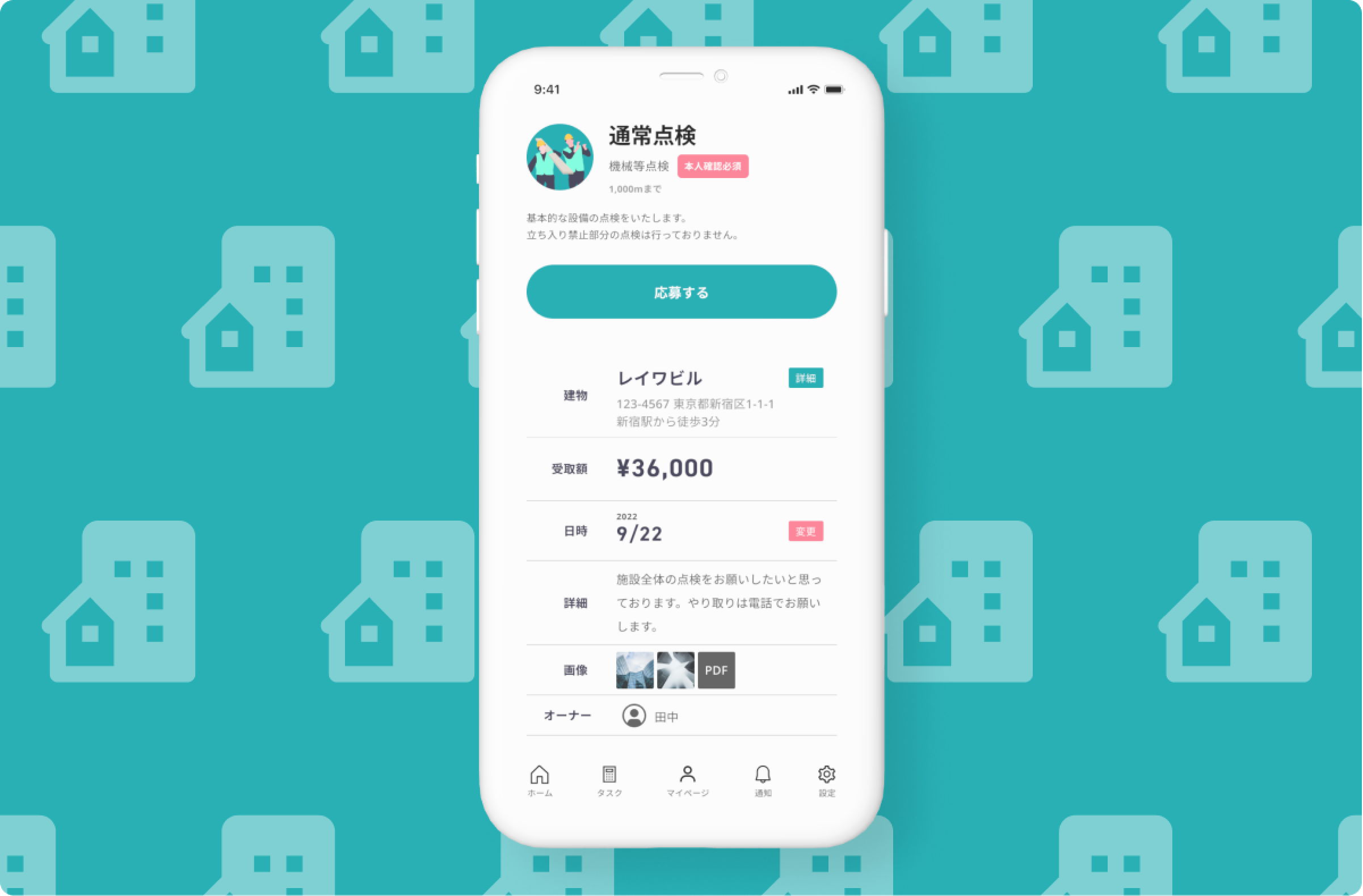 不動産オーナの方が建物に関する業者の方と直接作業の受発注ができるマッチングアプリを開発。ネイティブアプリだけでなく、運営側の管理画面も開発を行いました。